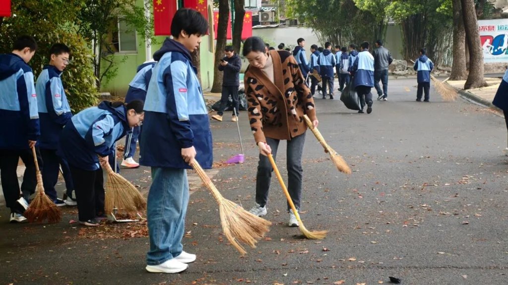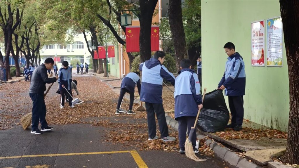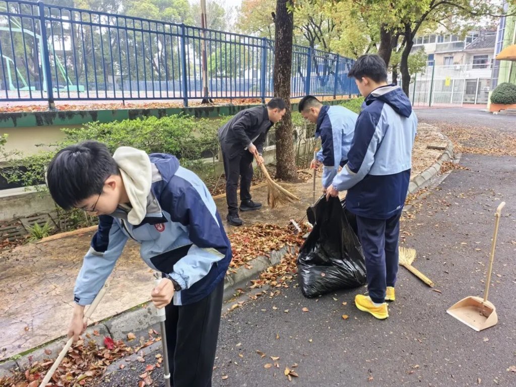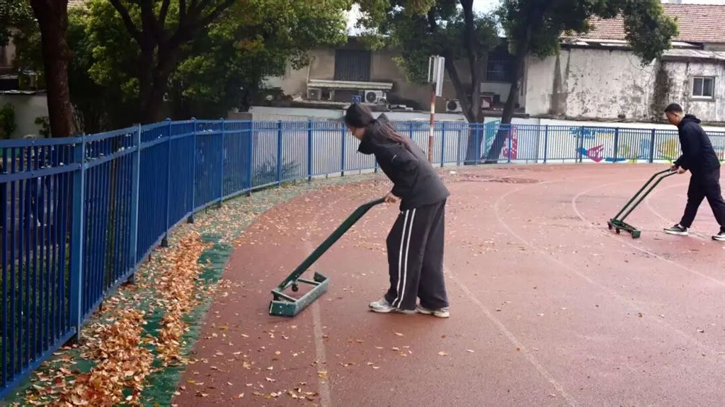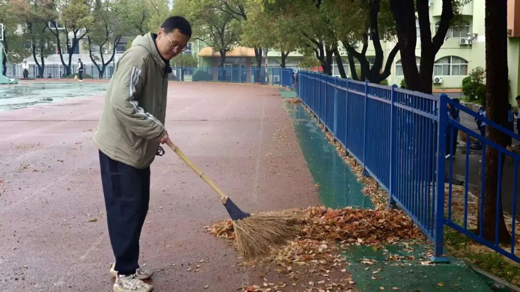 落叶虽美,却也为校园保洁添了几分忙碌。同学们分工协作、互帮互助,认真清理每一个角落,汗水浸湿额发,笑容依旧明媚。而最动人的,莫过于那些与“老班”并肩的瞬间。班主任和同学们一起弯腰清扫,偶尔笑着调侃几句,叮嘱大家注意安全。
