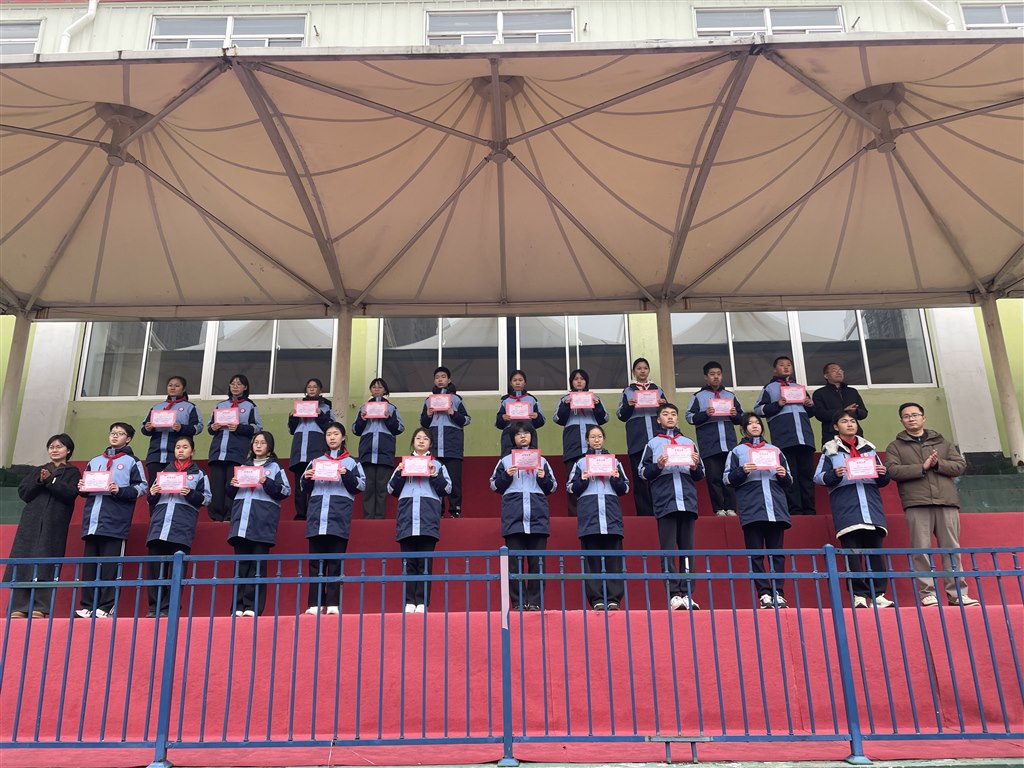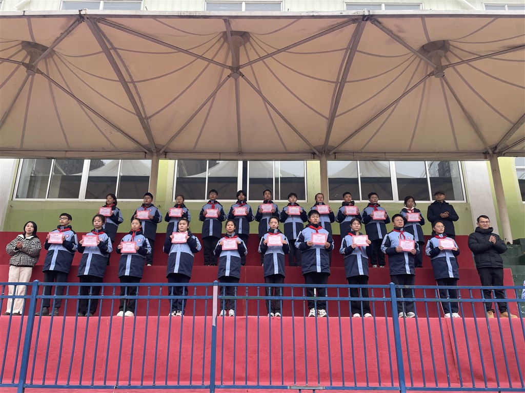 伴随着雄壮激昂的《义勇军进行曲》,五星红旗冉冉升起,全体师生肃立注目、高唱国歌,爱国情怀与奋进力量在心中激荡。仪式上,德育处吴主任宣读“最美正衡学生”名单,学校领导为获奖学子颁奖,表彰他们在校园生活中的责任担当与卓越表现。随后,七12班王子秦、八11班宋涵烁、九9班王瑞同学宣读“寒假之星”获奖名单,表彰假期中自主学习、实践奉献的优秀少年,以身边榜样激励全体同学砥砺前行。