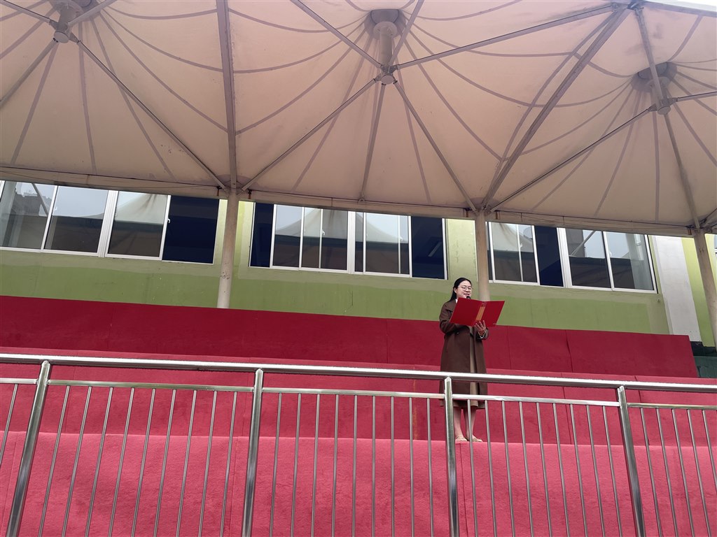 伴随着庄严的国歌声,五星红旗冉冉升起。全体师生肃立,少先队员敬队礼,高唱国歌,场面庄重而热烈。春天不仅是花开的季节,更是奋斗的起点。